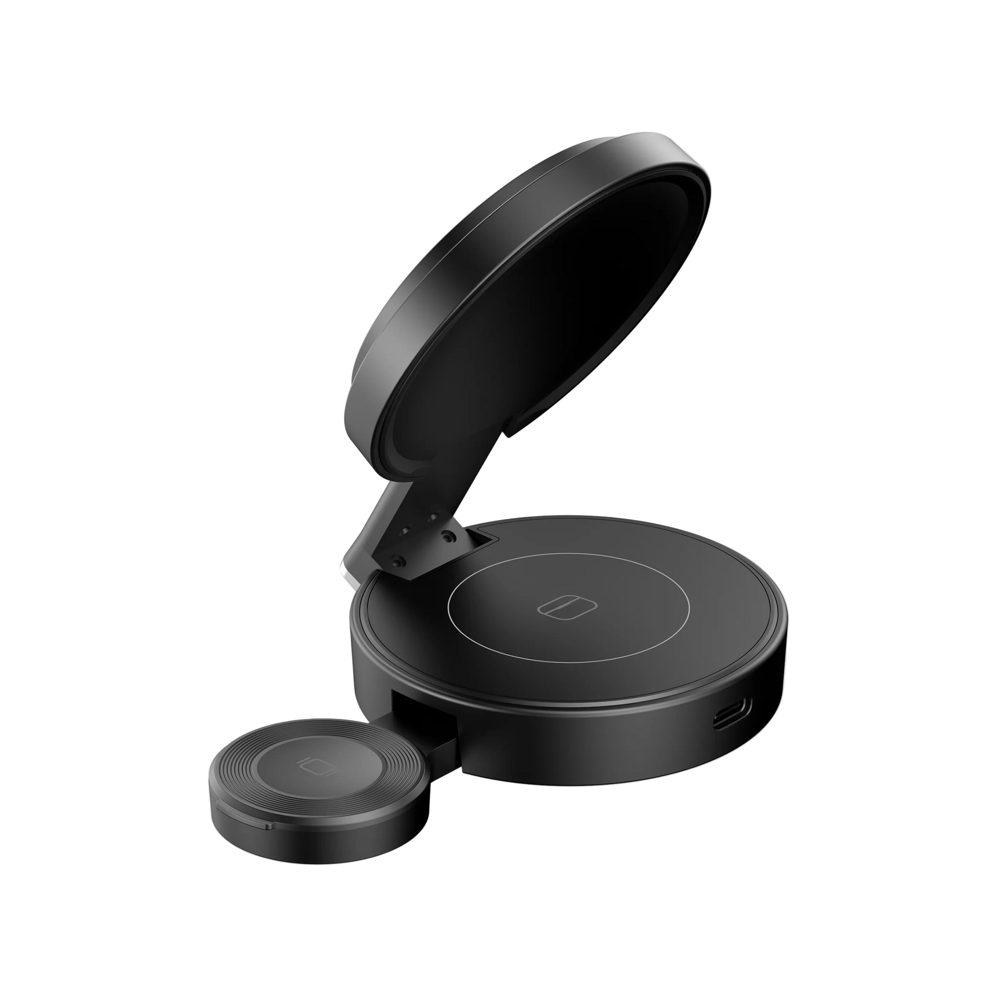 Power. Performance. Precision. Step up your workspace or nightstand setup with the ZIZO PowerVault Fold Pro — a sleek and sturdy 3-in-1 wireless charging station built for form and function. Engineered with a premium zinc + aluminum alloy body, this foldable charger delivers 15W phone charging, 3W smartwatch power, and a secure space for wireless earbuds. Its strong MagSafe alignment and adjustable stand make it perfect for streaming, video calls, or just keeping your screen in view while charging. Whether you're at home or in the office, Fold Pro is your go-to for effortless, organized charging with a high-end finish.