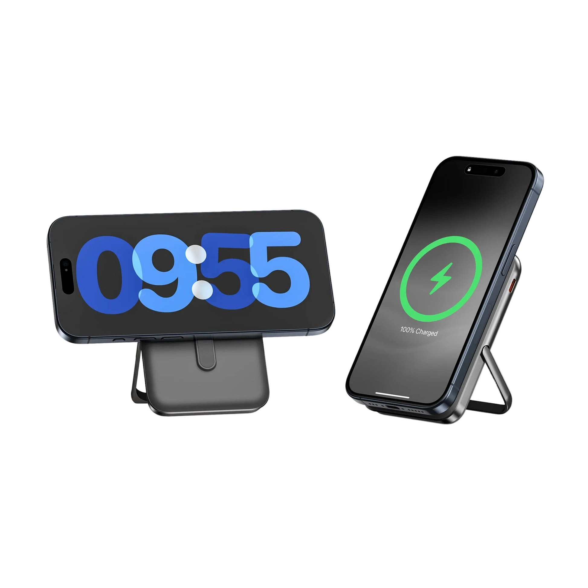 Discover the ZIZO PowerVault Magnetic Power Bank 10,000mAh, your ultimate portable charging solution. Designed to work seamlessly with MagSafe-compatible devices and cases, it securely attaches to the back of your phone for convenient and reliable charging. With Qi wireless charging, you can power up any Qi-compatible device with up to 15W output. The integrated kickstand supports your phone in both vertical and landscape positions, unlocking StandBy Mode on your iPhone for versatile use. Featuring multiple charging options, including 20W USB-C output, 18W USB-C input, and 15W wireless output, the PowerVault Magnetic Power Bank offers versatile and fast charging. An LCD display shows the remaining power, so you always know when it’s time to recharge. Stay powered up and ready for anything with the ZIZO PowerVault Magnetic Power Bank 10,000mAh, your reliable companion for mobile power needs.